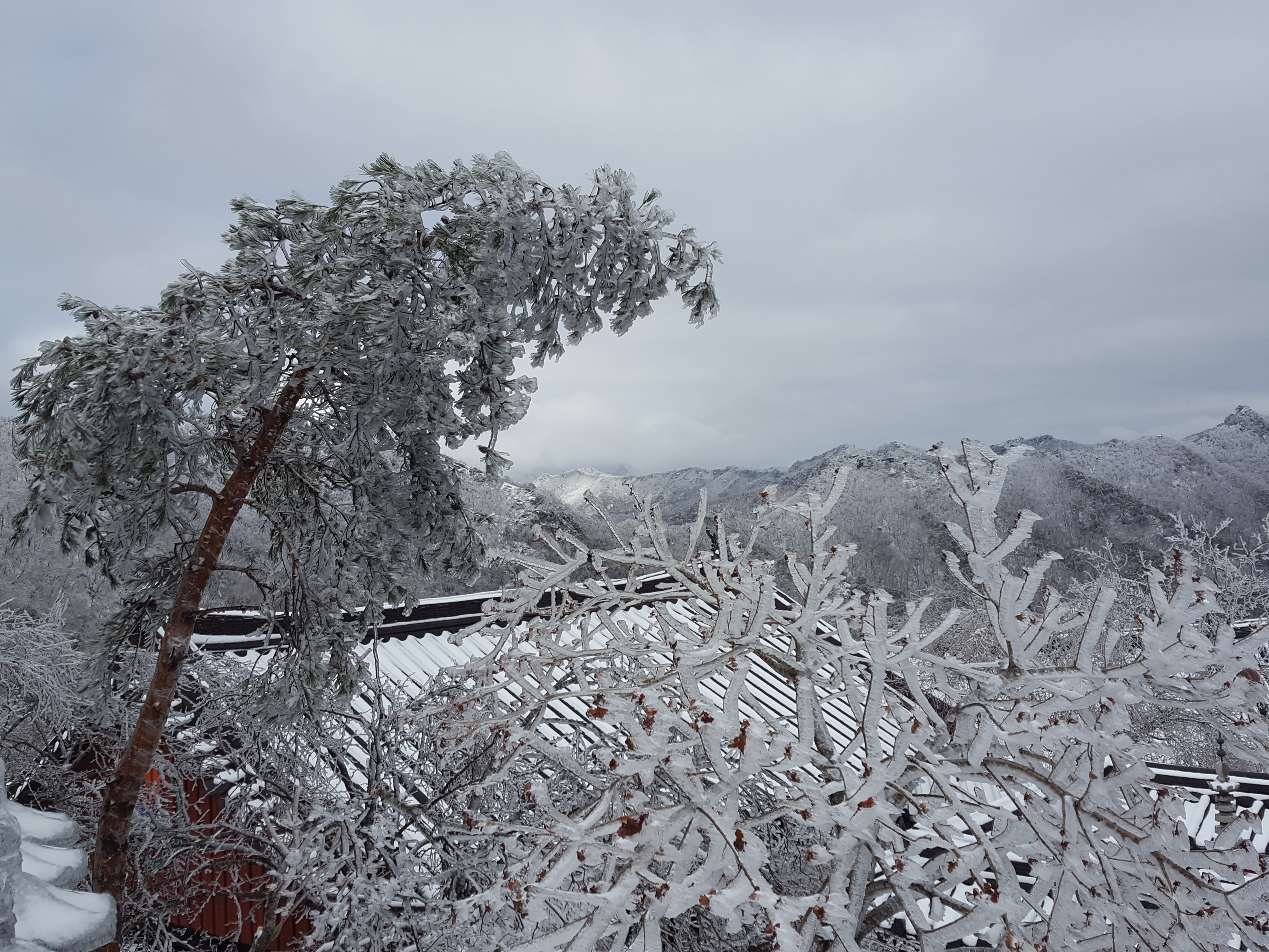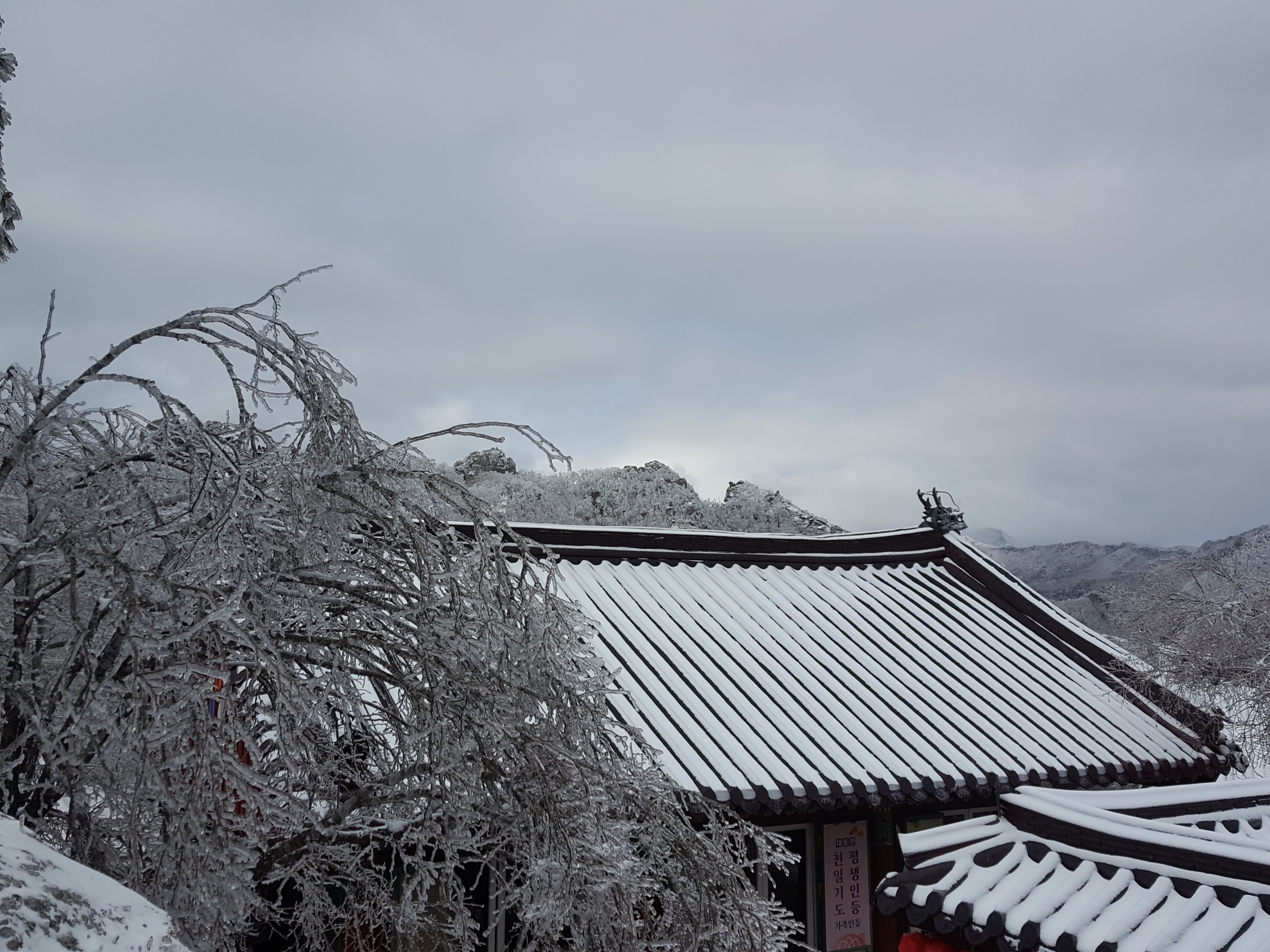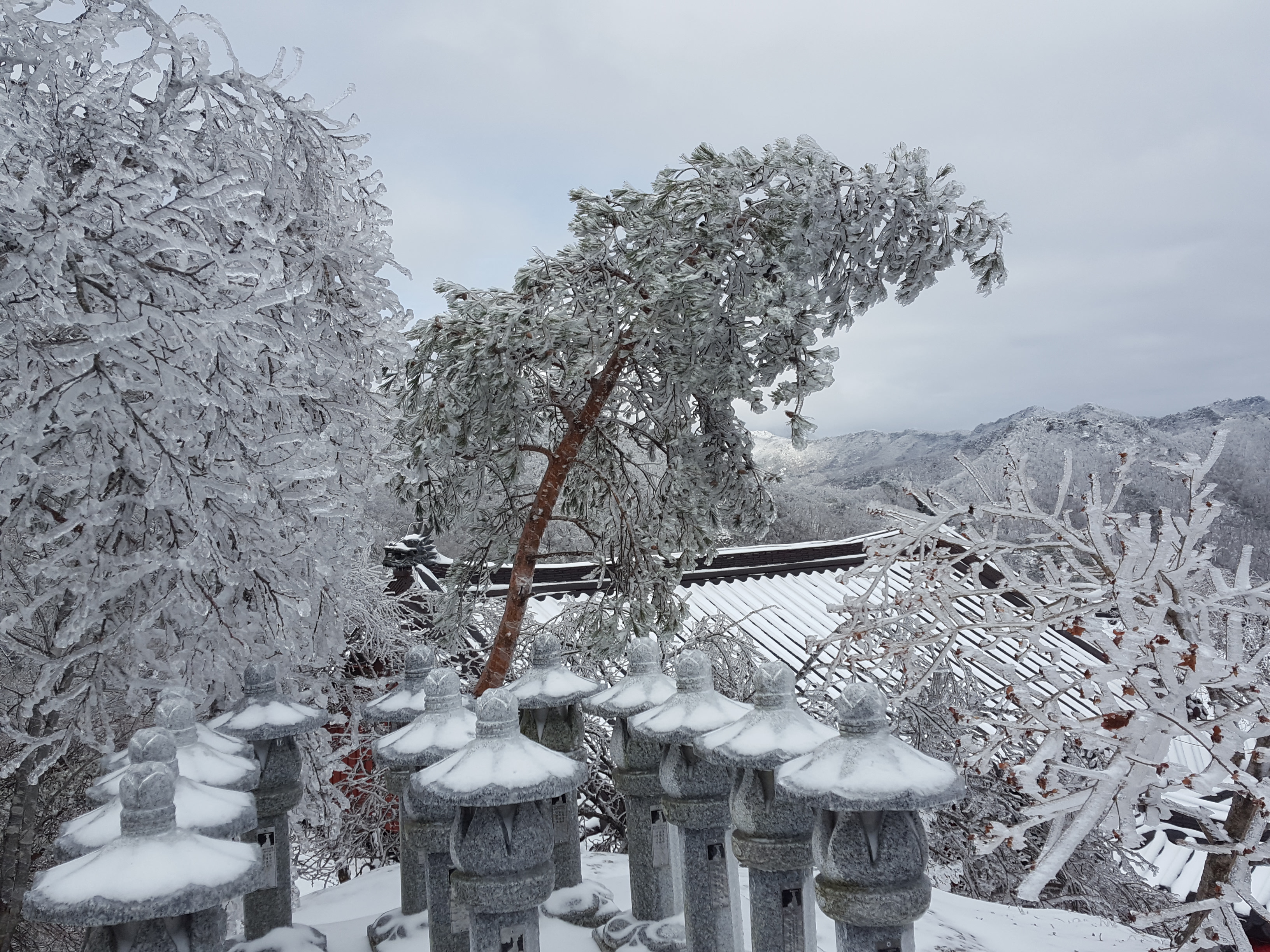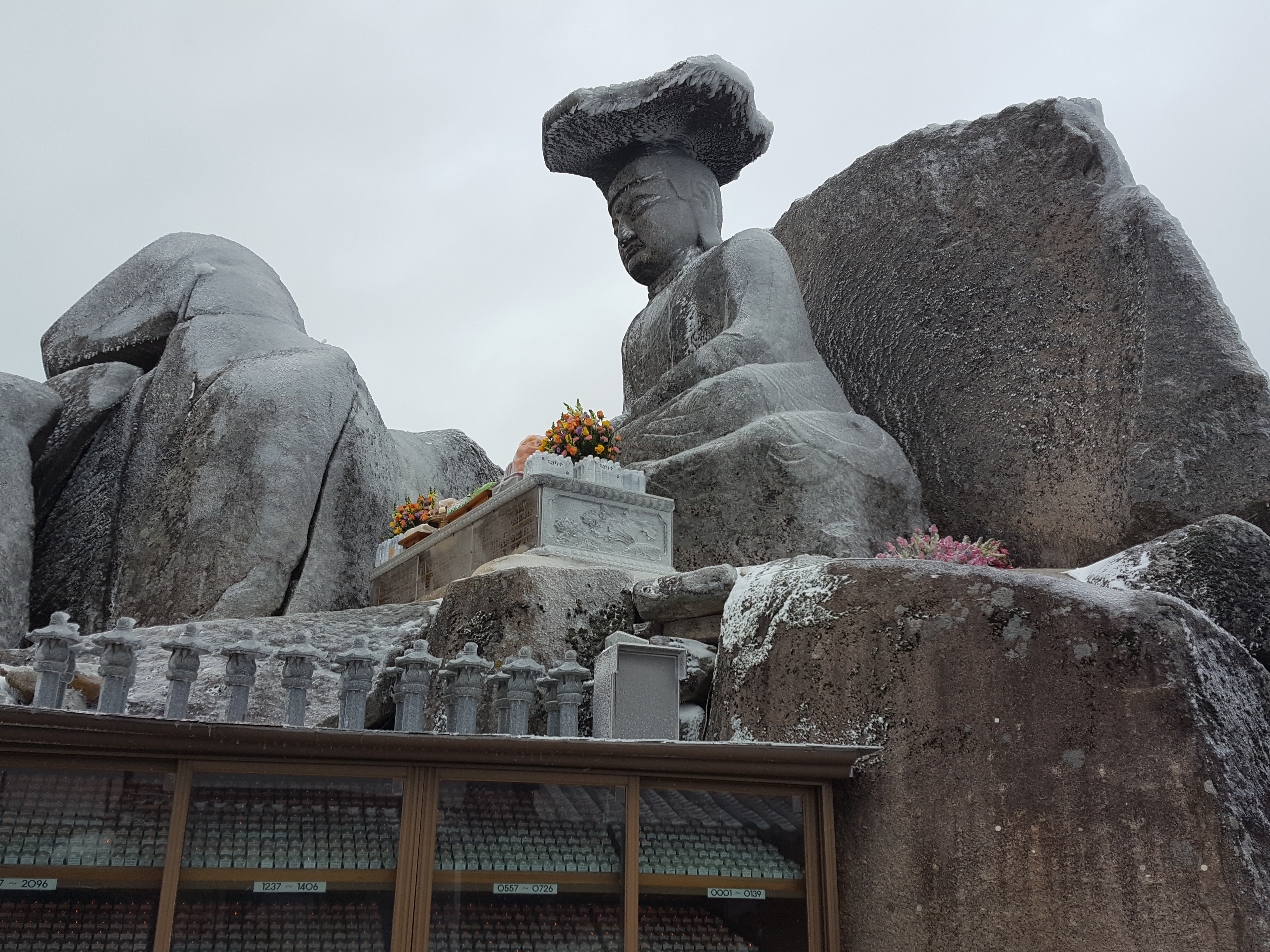 첨으로 부처님께서 입이 쩍 벌어지는 상고대를 꾸며